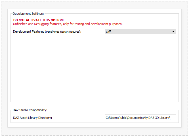 A custom DAZ asset library location can be set using this option.