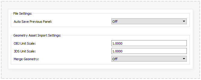When geometry files are imported into PanelForge each file is represented by a single object. Internally if the geometry file contains multiple objects these objects are drawn separately by PanelForge. This option will merge any geometry in a file import, when a file contains a large amount of objects activating this option may improve viewport performance.