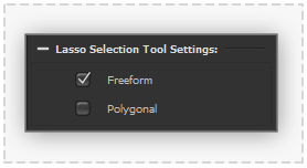 - Freeform: Dragging the cursor over the Canvas view will produce a continues boundary for the new selection area.