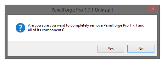 - Select ‘Yes’ when prompted to uninstall 'PanelForge (Studio/Pro).