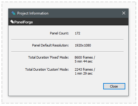 The 'Project Information' dialog window provides various general information about the currently open PanelForge Project.
