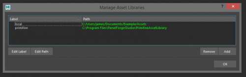 The 'Manage Asset Libraries window can also be later shown by clicking the 'Asset Library Manager' button in the 'Manage Asset Linkage' window.