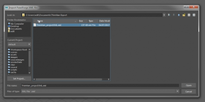 A file dialog window will be displayed to select the desired PanelForge Project XML file to import.
