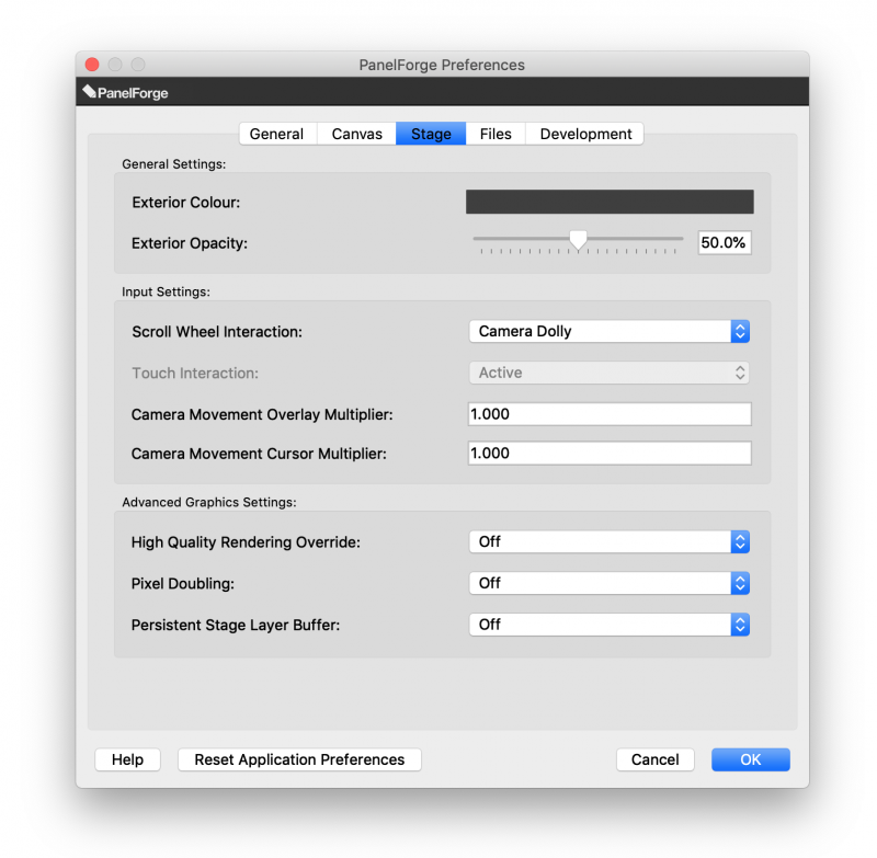 The 'PanelForge Preferences' provides options to configure elements of PanelForge's functionality. These options apply when interacting with all Projects in PanelForge.