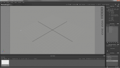 Similar to the Canvas Workspace Tools and options are shown in the Palettes to the right of the Workspace. We will be introducing the basic tools and concepts to quickly create our first 3D Stage environment.