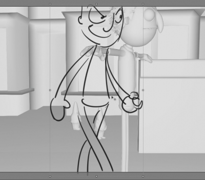 Even though the 'Stage' layer is omnipresent in all PanelForge Panels its opacity and visibility can be adjusted. As in this case we plan to draw 2D overlays over the Stage output we will a select and reduce the 'Stage' layer opacity to '60%' as a quick way to diminish its intensity. This will make drawing over the 3D assets easier later on.